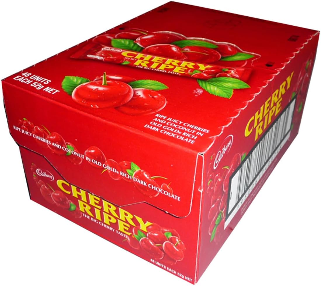 Cadbury Cherry Ripe Bar is the ripe juicy cherries and moist coconut smothered in old gold-rich dark chocolate ensures a unique and delicious taste. Cherry ripe offers an indulgent and rich treat. Cherry ripe treats perfect for sharing or snacking. Enjoy the big cherry taste.